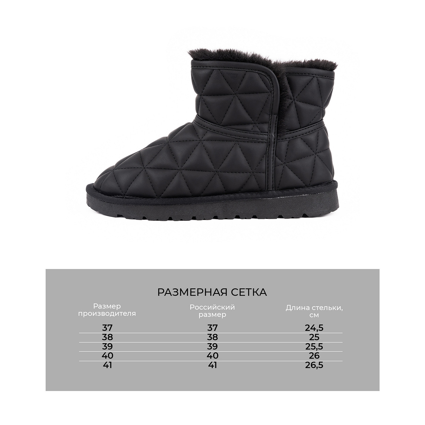 Отличные сапожки! Легкие, теплые, комфортные. По стельке - 25см - соответствует размер 38. Ничего не жмет.