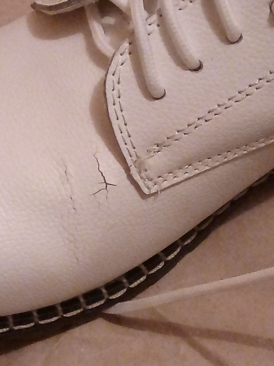 Очень удобные ботинки! были куплены 01.10.2020. Но, к сожалению, через месяц не ежедневного ношения на правом ботинке образовалась вот такая неприятная трещина(((  Левый ботинок выглядит как новенький. Под дождем не ходила, лишним весом не обременена...