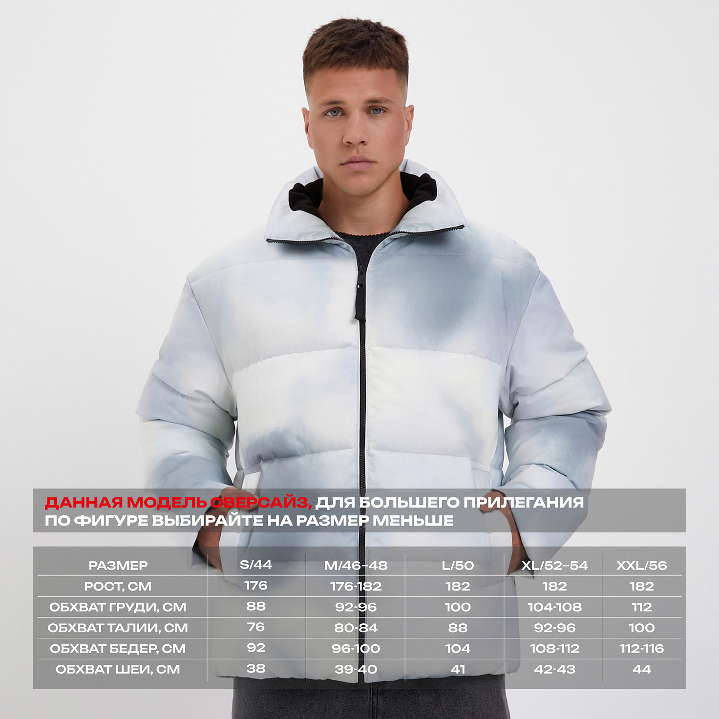 Данная модель оверсайз, для большего прилегания по фигуре выбирайте на размер меньше.
