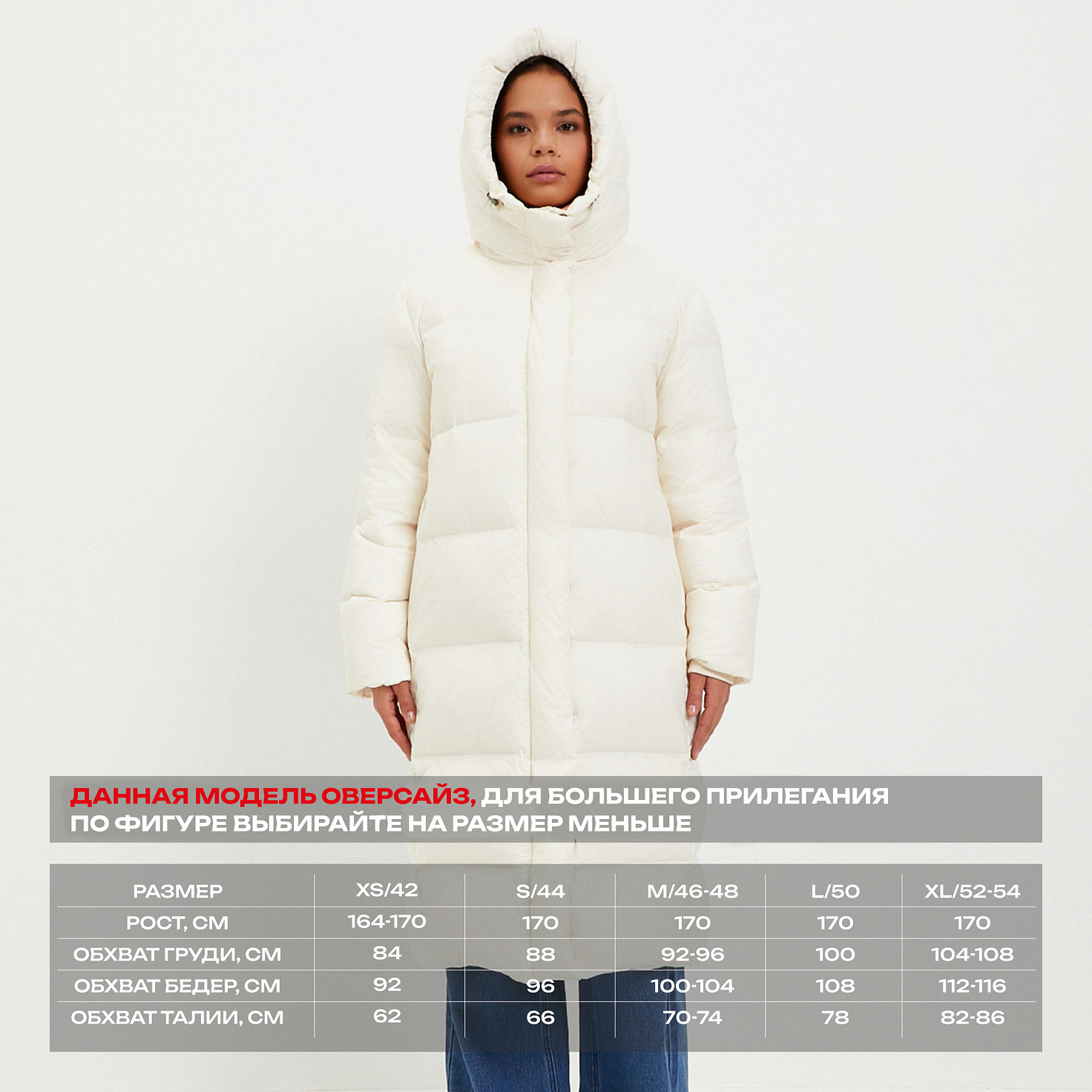 Данная модель оверсайз, для большего прилегания по фигуре выбирайте на размер меньше.