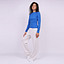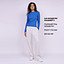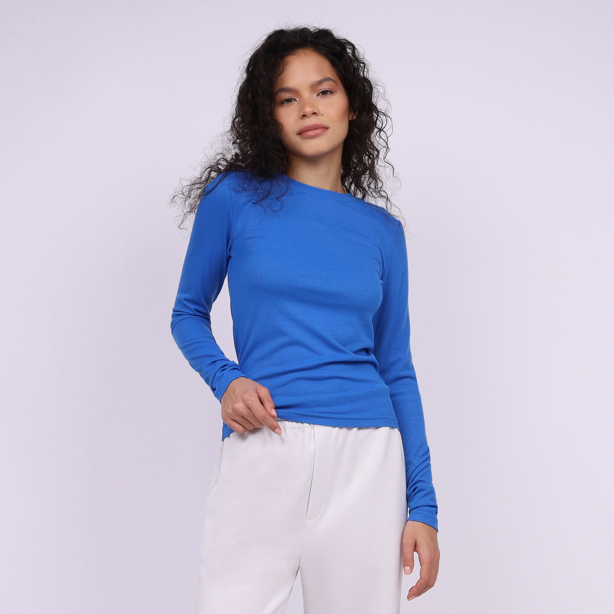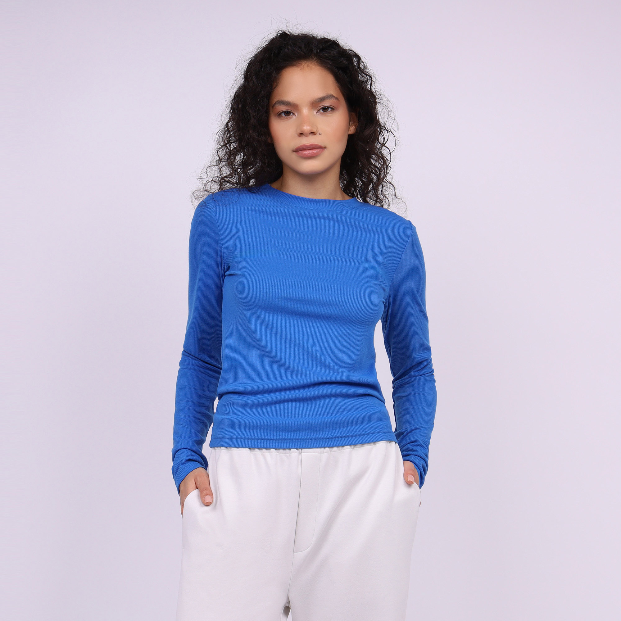 Женский укороченный лонгслив цвета ультрамарин с прилегающим силуэтом - воплощение минимализма и утонченной эстетики в одном изделии. Изготовленный из мягкого трикотажа с содержанием вискозы в рубчик, он дарит ощущение легкости и уюта на весь день. Этот материал отличается не только гипоаллергенностью - он обеспечивает оптимальное облегание фигуры благодаря своей высокой эластичности.