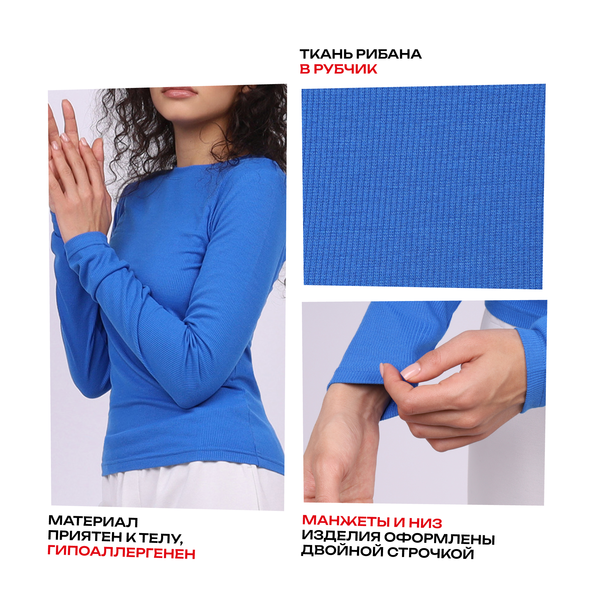 Рибана добавляет изделию современности за счет текстурированного эффекта по краям манжетов и ворота. Эта деталь также улучшает посадку изделия по телу за счет плотного прилегания без ощущения стягивания или дискомфорта.