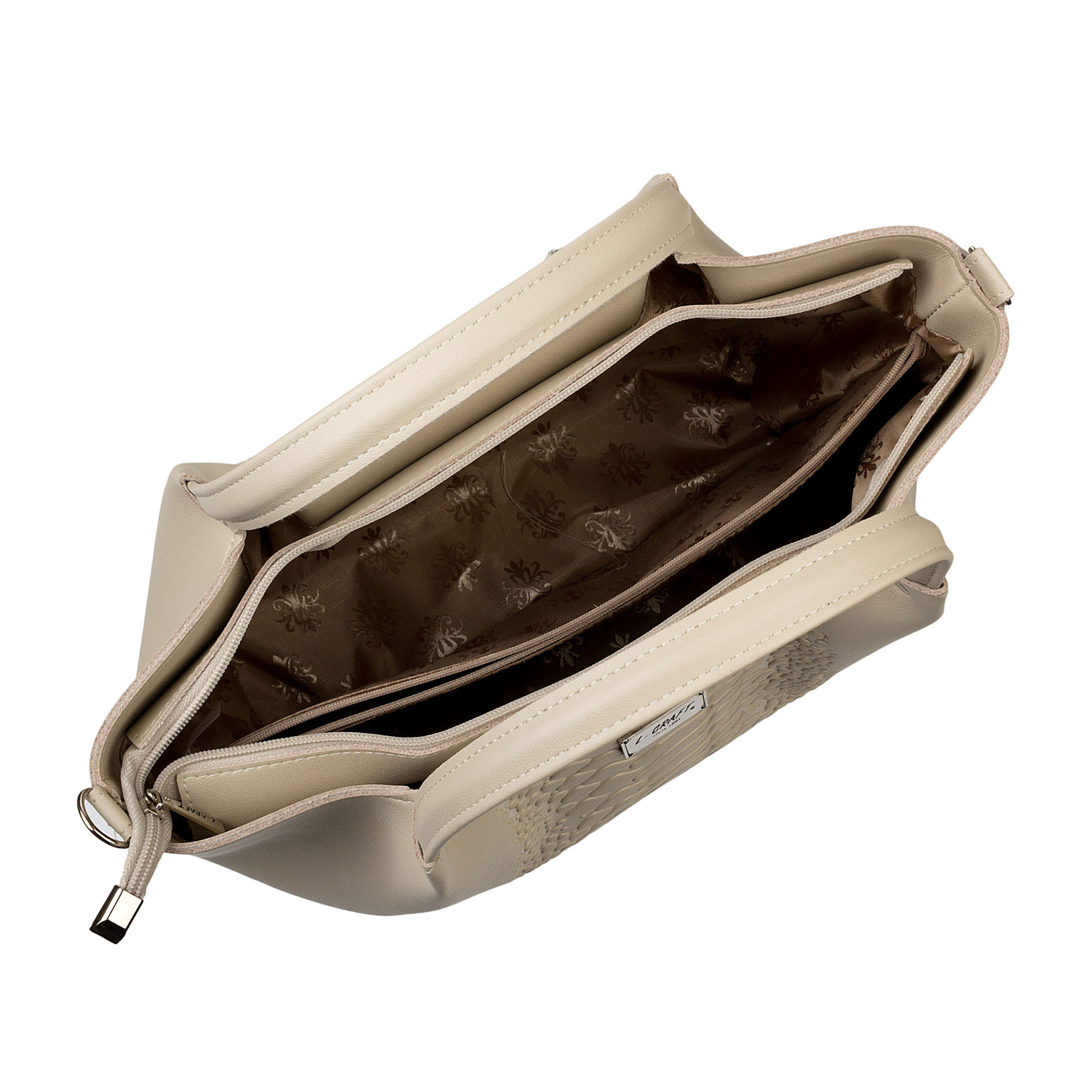 Дамская сумка бежевого цвета с тиснением под кожу рептилий - новинка в коллекции, которая лаконично завершит деловые, повседневные, праздничные образы женщин в летний сезон. Наружный и внутренние карманы помогают упорядочить вещи внутри и организовать пространство женской сумки так, чтобы все необходимое всегда было под рукой. Тип застежки - молния. В комплекте есть съёмный ремень. Дамскую сумку можно купить себе или в подарок любимой девушке, подруге, маме, жене на любой праздник. Сумка торговой марки Amo La Vita отлично будет сочетаться с обувью торговых марок, входящих в Zenden: Instreet, MUNZ Shoes, Pulse, Quattrocomforto, ZENDEN Active, ZENDEN collection, ZENDEN comfort, ZENDEN first, ZENDEN woman.