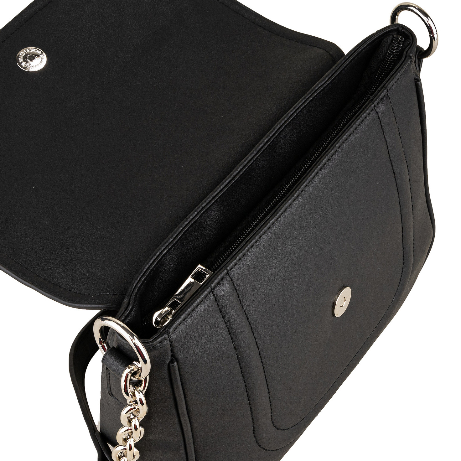 Черная сумка женская маленькая кроссбоди Zenden на плечо. Элегантная маленькая кросс-боди сумочка позволит взять с собой все необходимое - смартфон, ключи и прочие полезные мелочи. Сумка оснащена молнией, а также дополнительно закрывается на магнит, что обеспечит надежную защиту ваших вещей. Аксессуар выполнен из высококачественной экокожи, которая отличается долговечностью и износостойкостью. Серебряная фурнитура добавит сумке яркий акцент и будет служить лаконичным декором.